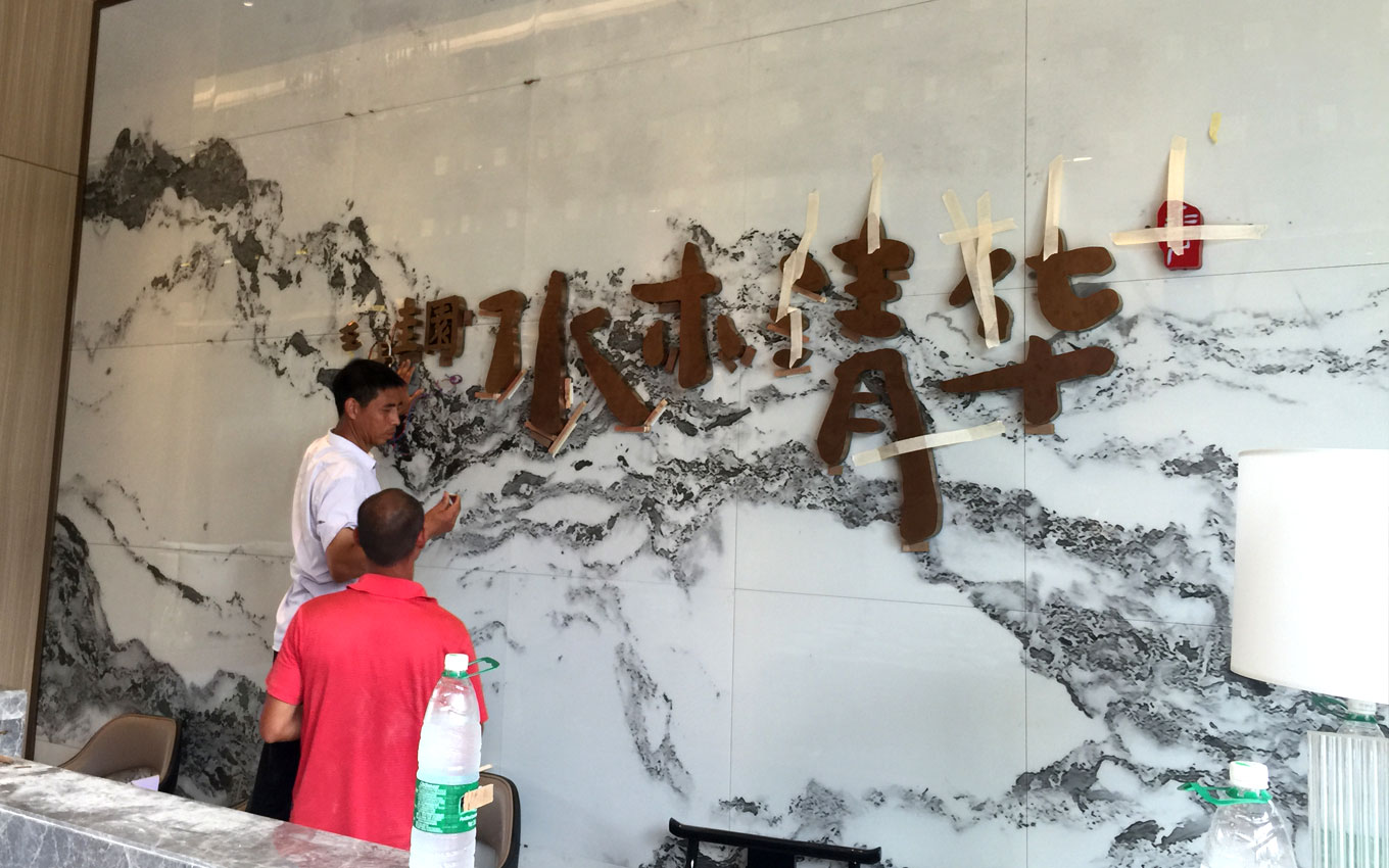 水木清華的標識設計,以“書香覓知己、童心共成長”的設計概念,把中國的書法,書卷氣的卷軸文化結合起來,再以自然的木色、與中國的古銅相結合,人和時代以香港精工的制作工藝,完美的制作呈現,從設計、制作、安裝360度全案完成。