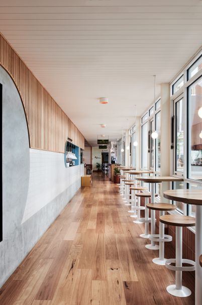 編織通往啤酒花園的路是一種有趣的體驗,柵欄高腳凳從木條和混凝土條無縫流出。根據旅行季節,客人可以選擇多種選擇來享受 提供的活動。裝飾公共酒吧的外墻,微風塊為客人提供涼爽的夜晚,或者他們是否應該在瘋狂的鋪砌地板上尋求溫暖,壁爐采用銹色飾面作為啤酒花園特色的核心。