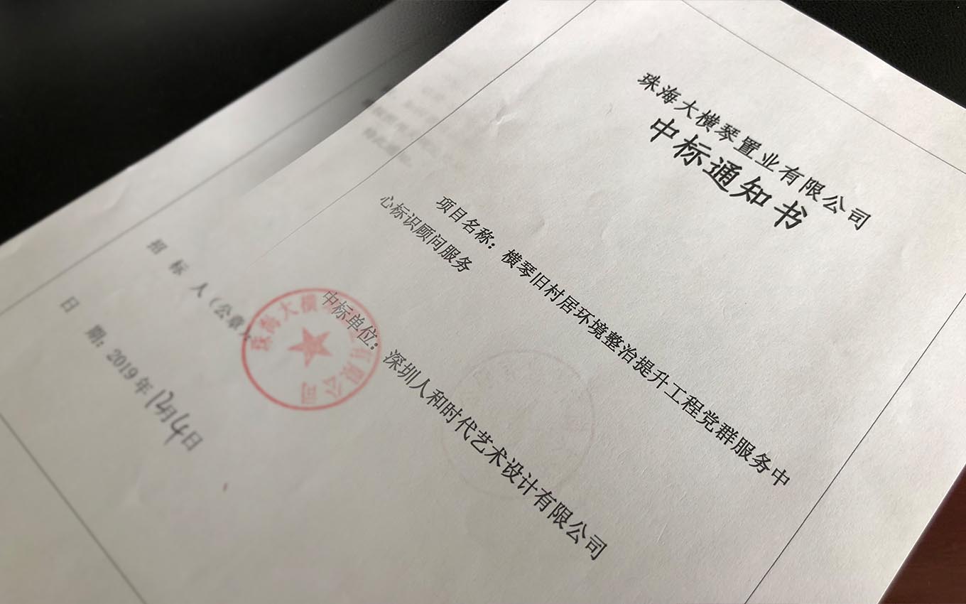 橫琴舊村居環境整治提升工程及公共服務用房標識顧問服務,人和時代設計于2019年12月4日為中標設計單位。